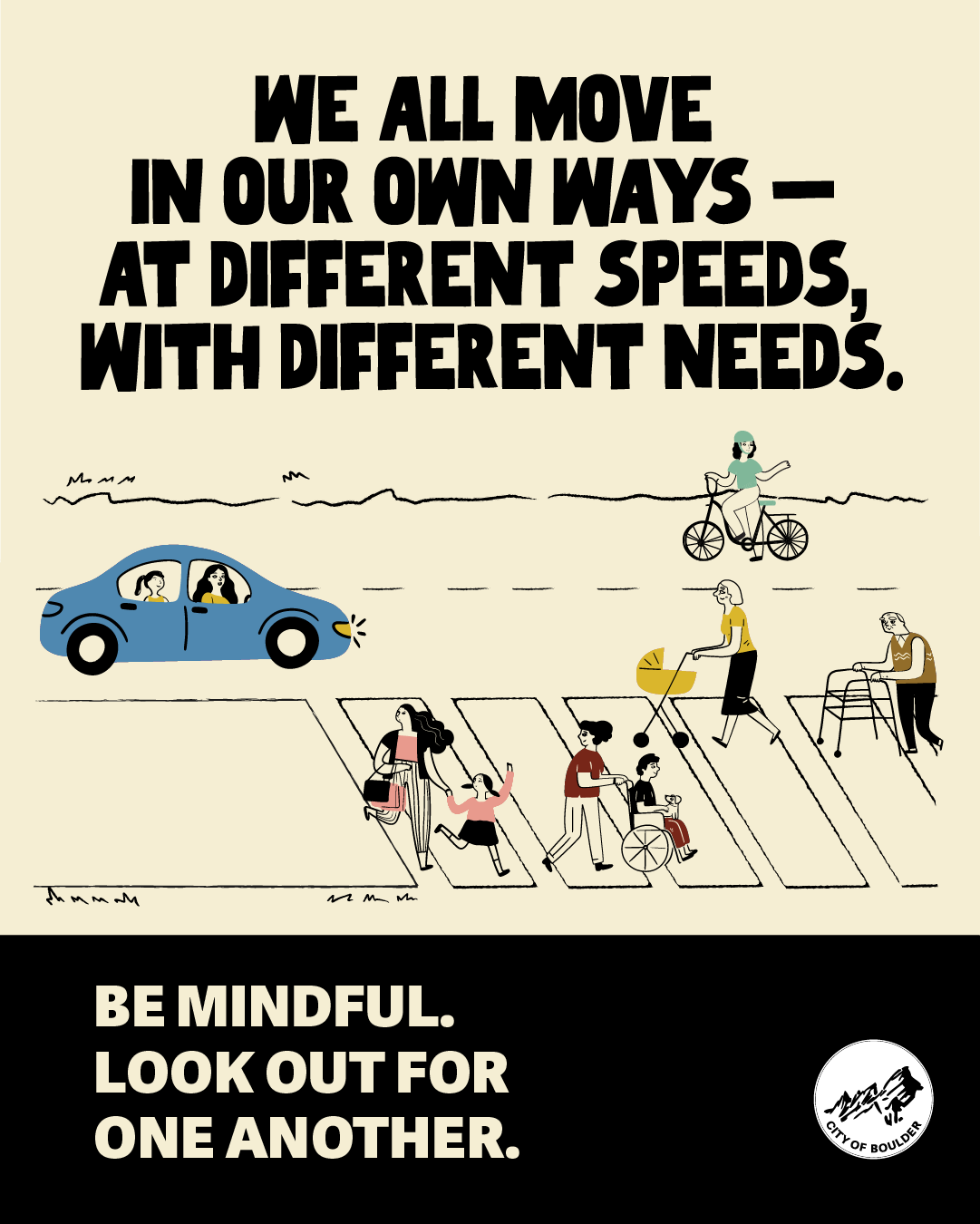 BOULDER, Colorado (Apr 14, 2026) — Boulder is launching a spring safety and education campaign to support building a community culture of courtesy as more people share spaces on our streets when walking and using micromobility — smaller-scale travel choices like scooters, skateboards and bikes. The city will post signs and flyers around town and share the campaign to social media in the coming weeks. A media kit with digital materials is available for partners and the public to share with their communities.