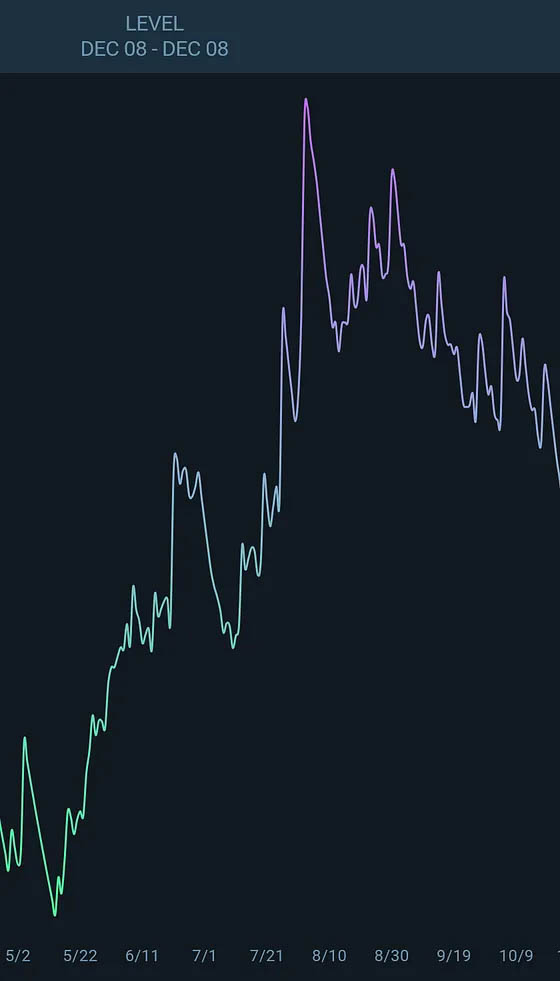 - FasCat tracks your fitness in real time with a feature called “Level.” I found this a little misleading, as this chart shows your training algorithmically by adding up your OTS scores (see above). It’s similar to cumulative training load (CTL) on the Training Peaks platform. And while this level number SHOULD track with your FTP, that was not the case for me. As my FTP was increasing the level graph was trending down and to the right.
