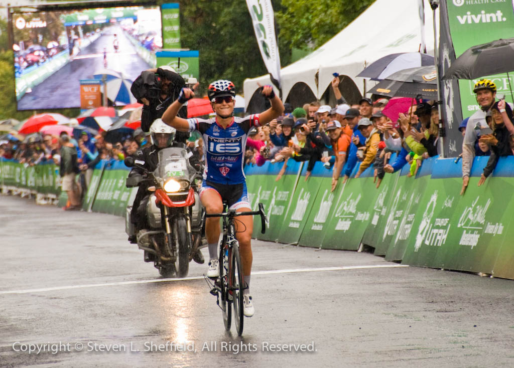 Allie Dragoo winning in the 2015 Tour of Utah Women's Edition Stage 1 Criterium in Logan Utah on August 3, 2015. Photo by Steven Sheffield