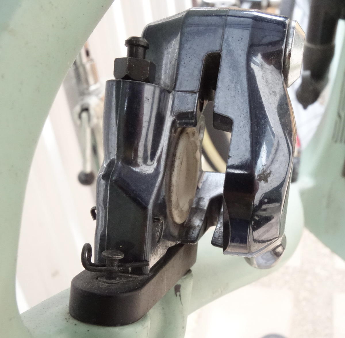 At the end of the line, so to speak, is where the majority of the braking magic happens. The brake caliper is a block of aluminum containing the brake pads, pistons and some flexible seals. To me, these flexible seals are the magic part. As fluid moves into the caliper, the fluid pushes pistons out of their bores, moving the brake pads against the rotor to slow the bike and rider. These seals, which keep brake fluid in the piston bore under pressure, flex outward with the moving piston. When braking is complete and pressure is released from behind the piston, the seal flexes back, pulling the piston and ultimately, the brake pad, back into their resting position. As the brake pads wear, the seals allow the system to self-adjust by allowing the piston to creep out of its bore. The number of pistons in the caliper vary for purpose of the brake. For example, for road and cross-country mountain bikes where light weight is a major factor, the brakes are small with only two pistons per caliper. Heavier duty brakes, such as for downhill will be larger and heavier with four pistons per caliper. Four piston calipers will use larger brake pads, the increased braking surface area greatly contributing to increased braking power. In addition, the heavier caliper body absorbs more heat from the braking friction, allowing the system to work more effectively longer.