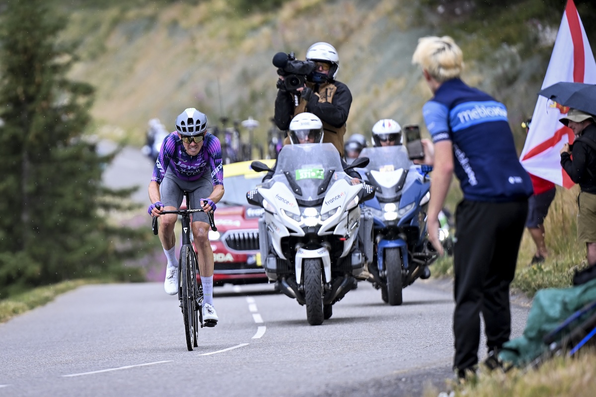 “It’s special to do it again here in the Tour de France,” O’Connor reflected, his voice thick with emotion and exhaustion. “The last time in Tignes was a complete shock but this time I got to enjoy much more. I had a super day today, I was finally back to being me after struggling for the past 17 days. My knee is absolutely screwed now, it’s really painful. It’s lingering there and it’s not going to stop until the end of the race. But to finally get it done… I chased that win on day 10, it was a lot of frustration when Simon [Yates] won. Having that moment today is absolutely massive. You always want another win at the Tour and you can’t get enough of these. I was afraid behind they would be dropping bombs and I would explode in the final kilometres. They closed the gap in the finale but I had enough. Once Rubio was gone, I just didn’t want to be caught by the Yellow Jersey group in the final 5km. When I heard it was still 3 minutes with 3 kilometres to go, it felt so good. On Glandon, I tried a lot, but it came back and I was feeling in the box. I saw Felix Gall and Primož Roglič go and I thought: ‘Just do it, get yourself there.’ On Glandon and then at the bottom of Madeleine, I was really close to pulling the pin but these are days that you have to be mentally resilient and trust yourself. I really needed self belief today, from myself and from the team.”